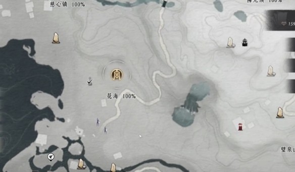2、然后前往清河地图的花海这个位置,找到红线墓碑,互动触发。