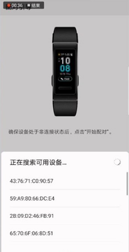 4.再开启手机蓝牙并搜索设备,点击手机蓝牙搜索列表中的华为手环蓝牙名称即可进行配对。