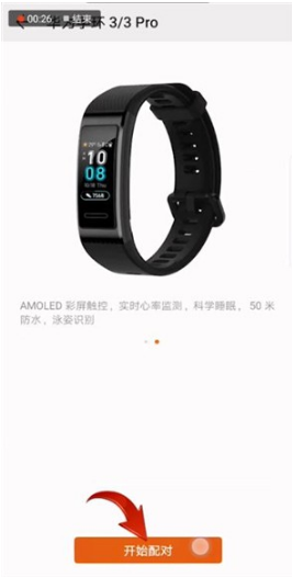 3.点击【手环】,选择你的手环型号,接着点击【开始配对】。