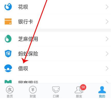 2、然后在页面上点击打开“借呗”功能。