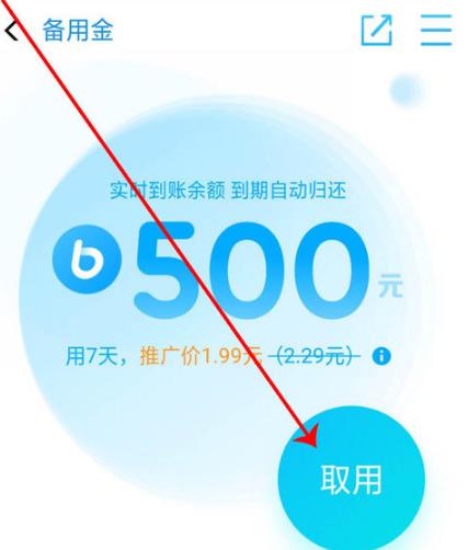 3、在借呗页面上我们可以看到“备用金”的入口,点击打开。
