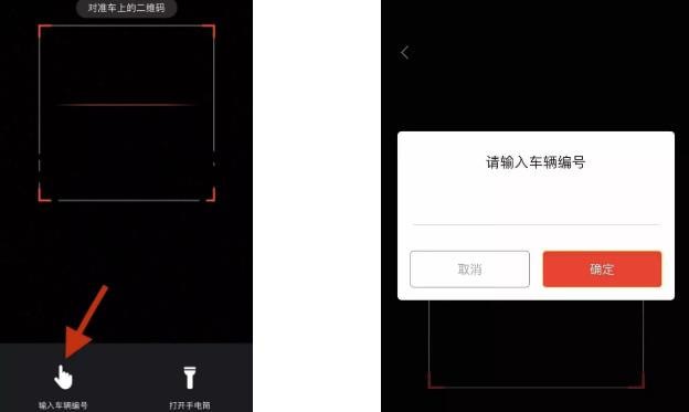 第三种方法:您可以在APP扫描二维码页面的下方点击【输入车辆编号】,并将车辆二维码下方的编码输入其中即可使用。