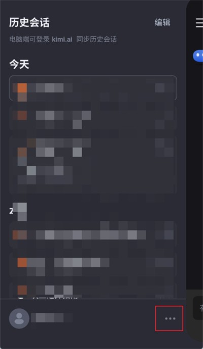 2、点击后弹出历史会话界面,点击该界面右下角的【...】选项;
