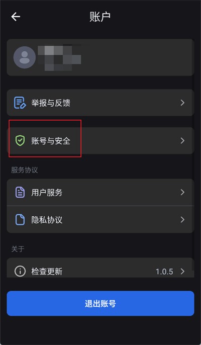3、点击后进入账户界面,在里面找到【账号与安全】选项并点击;