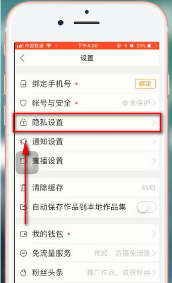 3.然后点击【隐私设置】