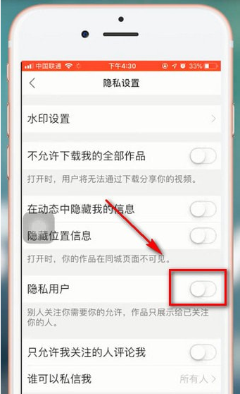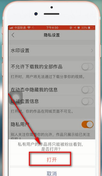 4.最后将【隐私用户】开启,这样别人关注你就需要经过你的允许后才能关注啦