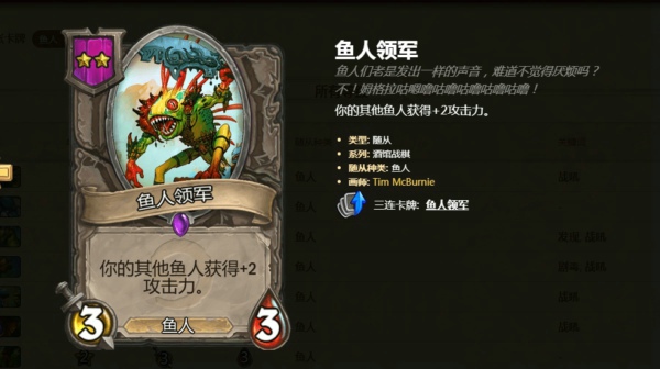 但是酒馆战棋中有一张牌叫鱼人领军:你的其他鱼人获得加2攻击力,即使其他鱼人死了新上场的也会加持,十分强劲。