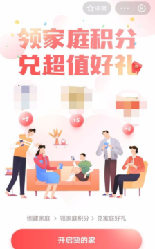 领家庭积分,兑超值好礼,点击开启我的家,如下图。