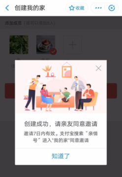 邀请拉人点击创建,对方同意加入后即可完成创建,我的家功能正式启用啦。