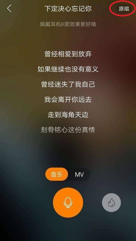 2、在K歌模式下点击右上角的原唱,可以自由切换是否保留或去掉原唱。
