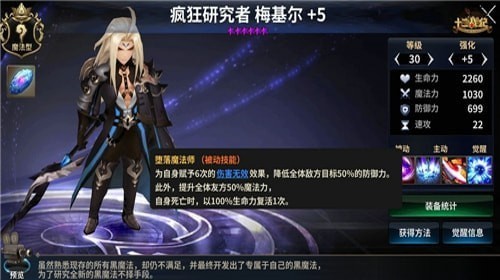 梅基尔的被动技能【堕落魔法师】给予他十分强悍的能力。赋予自身6次伤害无效同时降低全体敌方防御力,攻守平衡。提升全队魔法力又让他拥有团队价值,最关键的是,死亡时可以满血复活一次,这个属性搭配上1血戒指简直是要逆天的节奏。