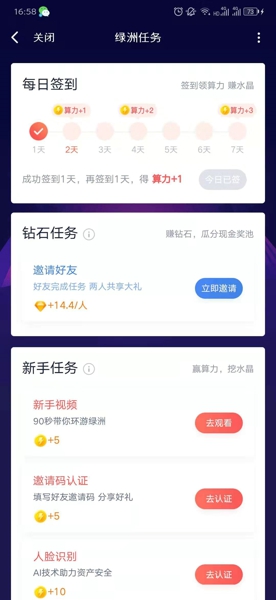 1、钻石任务之借款任务:居民通过该任务完成有钱花借款,后台会每日计算居民的借款利息,按照比例返还钻石,同时获得一个算力,获得的钻石为冻结状态,还款时解冻用户还款部分的冻结钻石,自用户首次借款起2年内的借款有效!