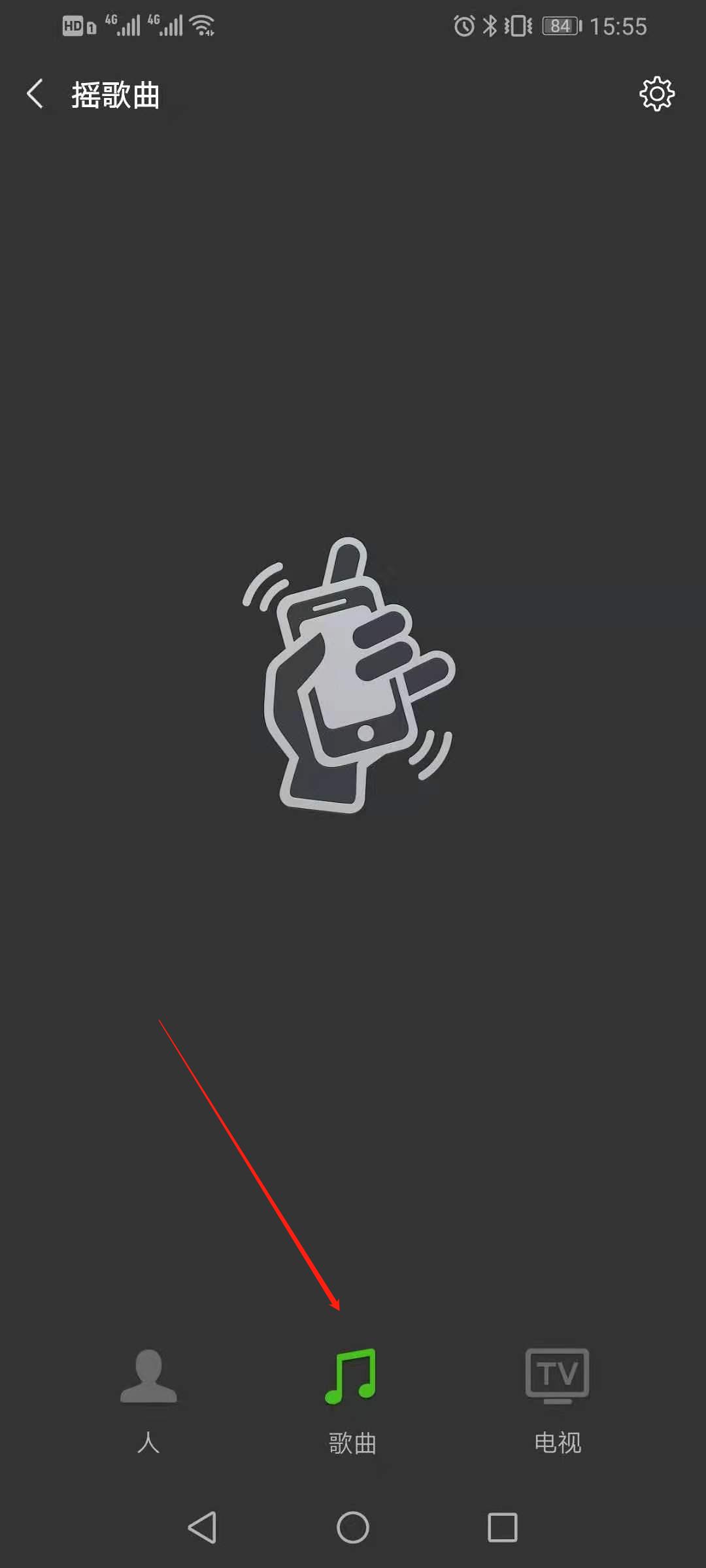 2、然后我们找到“摇一摇”选项栏,进入后点击底部的“歌曲”选项。