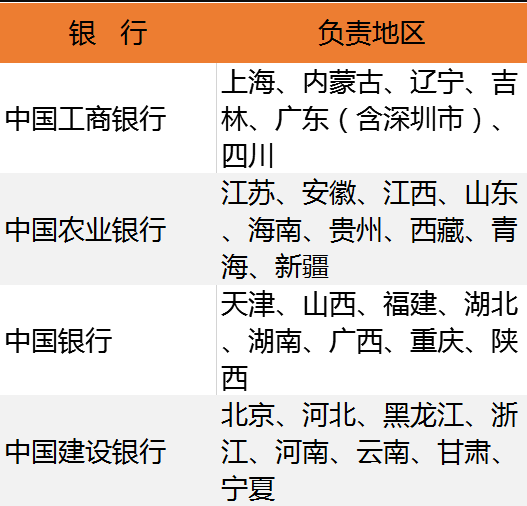 四大银行承兑地区分工