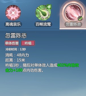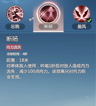 对18m内单体敌人使用,吟唱1s后使敌人减少100点内力
