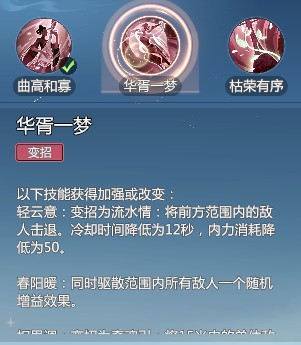 轻云意:变招为将前方范围内敌方击退,冷却时间降低为12s