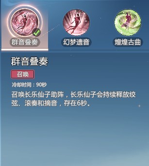 召唤长乐仙子助阵,持续释放绞弦、滚奏、摘音,存在6s