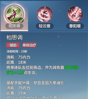 沉鱼吟:变招吟唱1.5s后,为18m内单体友方目标恢复生命,同时对其施加护盾