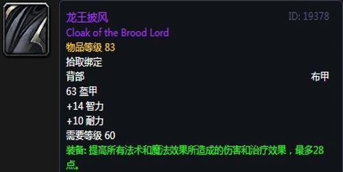龙王披风:披风,出自黑翼之巢副本奈法利安掉落,推荐附魔强效抗性。