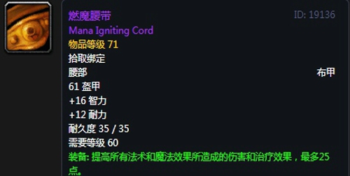 燃魔腰带:腰带,出自熔火之心副本迦顿男爵,玛格曼达,焚化者古雷曼格,加尔掉落,无法附魔。
