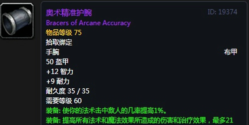 奥术精准护腕:护腕,出自黑翼之巢副本勒什雷尔掉落,推荐附魔强效智力。