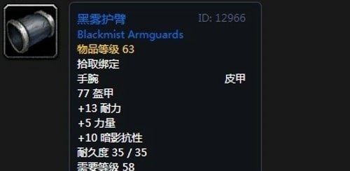 黑雾护臂:护腕,出自黑石塔上层副本比斯巨兽掉落,推荐附魔超强耐力。