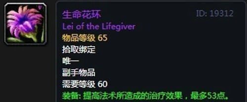 生命花环:副手物品,出自奥山声望奖励装备,无法附魔。