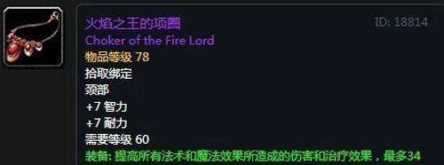 火焰之王的项圈:项链,出自熔火之心副本拉格纳罗斯掉落,无法附魔。