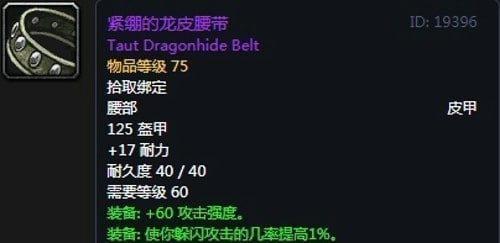 紧绷的龙皮腰带:腰带,出自黑翼之巢副本埃博诺克,弗莱格尔,费尔默均可掉落,无法附魔。