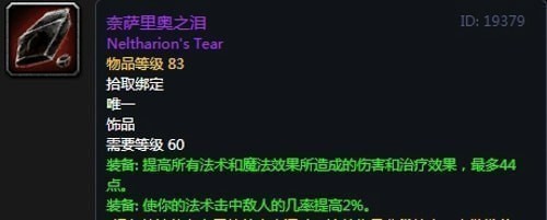 奈萨里奥之泪:饰品1,出自黑翼之巢副本奈法利安掉落,无法附魔。