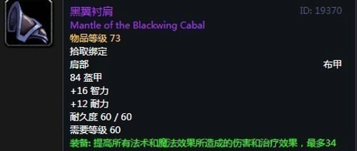 黑翼衬肩:肩甲,出自黑翼之巢副本狂野的拉佐格尔掉落,推荐附魔多彩黎明衬肩。
