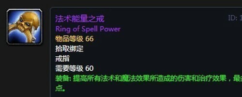 法术能量之戒:戒指2,出自熔火之心副本基赫纳斯,沙斯拉尔,鲁西弗隆,萨弗隆先驱者均可掉落,无法附魔。