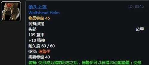 狼头之盔:头部,出自制皮专业制作,推荐附魔次级奥术融合。