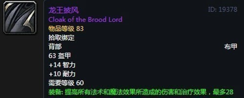 飞龙披风:披风,出自黑翼之巢副本小怪掉落,推荐附魔次级敏捷。