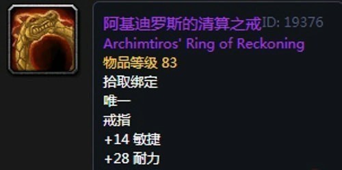 阿基迪罗斯的清算之戒:戒指1,出自黑翼之巢副本奈法利安掉落,无法附魔。