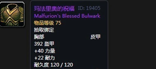 玛法里奥的祝福:胸甲,出自黑翼之巢副本埃博诺克掉落,推荐附魔极效生命。