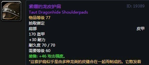 紧绷的龙皮护肩:肩部,出自黑翼之巢副本克洛玛古斯掉落,推荐附魔多彩黎明衬肩。