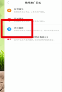 4、点击【推广作品】-【关注置顶】,支付后就可以置顶了。
