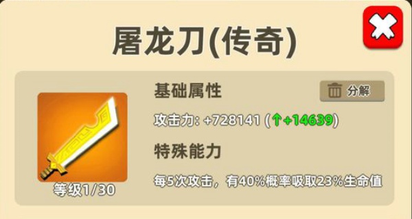 属性如上图所示,攻击力728141,特殊能力为每五次攻击,有40%概率吸取23%生命值,吸血效果还是很不错的,不管是推图还是挂机都是个十分不错的选择。