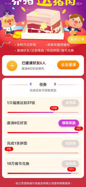 阳光养猪场目前确实有着兑换猪肉的活动,其实领取猪肉的条件是很简单的,但是小编申请过两单猪肉,却一直都是在审核状态,让这叫让人耐人寻味了,这送猪肉的活动并不是官方提供销售服务的,是由江苏泗阳可成食品有限公司提供销售服务的,也就是第三方提供销售的。