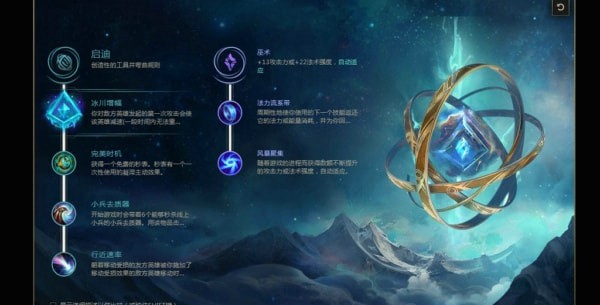 冰川增幅自带小减速技能,对于技能能中率有所增加,小兵去质器能够前期保证自己不漏炮兵,行近速率是配合大招减速。
