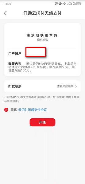 3、进入到开通云闪付无感支付的界面,设置好扣款顺序,确认开通;
