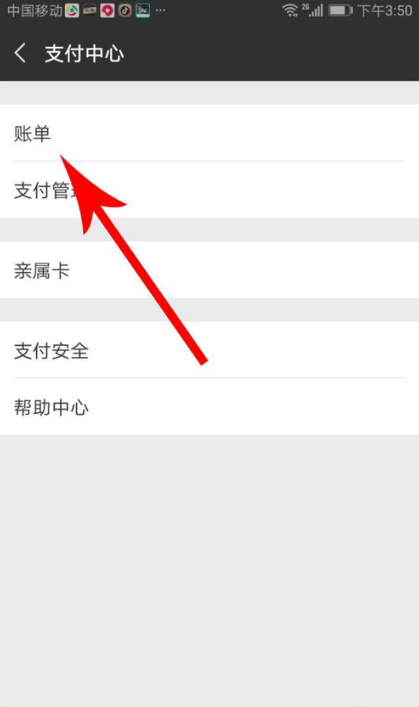 4、在支付中心可以看到“账单”选项,点击打开。