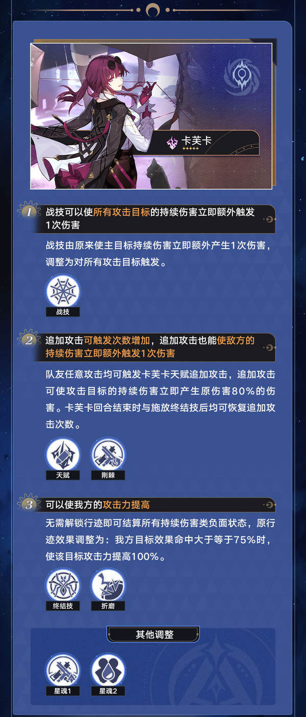 2、追加攻击的可触发次数增加,追加攻击也能使敌方的持续伤害立即触发1次伤害。