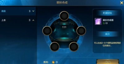 这个合成器,拥有5个孔,每放入一个时装可以增加20%的成功几率,也就是代表,合成一个天空套就要用五件时装和两个合成器,加起来需要12000泰拉,等于120块一件,总共需要1360块,这个价格嗯,有点嗯,大家明白就好。良心啊!