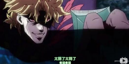 角色DIO成为吸血鬼之后,就觉得自己站在了食物链顶端,因此在和大乔战斗时一脸高傲地重复说着“贫弱,贫弱”,以表示对手太弱,自己很强。因为日语发音和“平角裤平角裤”非常像,加上战斗时强大的气场,加上jojo本身的热度,因此观众热衷玩这个梗。