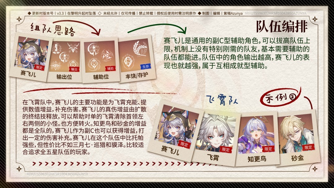 2、飞霄队:飞霄+赛飞儿+知更鸟+砂金