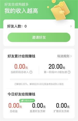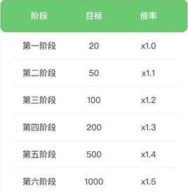 3、每提升一个阶段,可获得更多的额外倍数加成(如在第10阶段,2倍加速时,好友为你赚10元,你实际可获得20元奖励)。