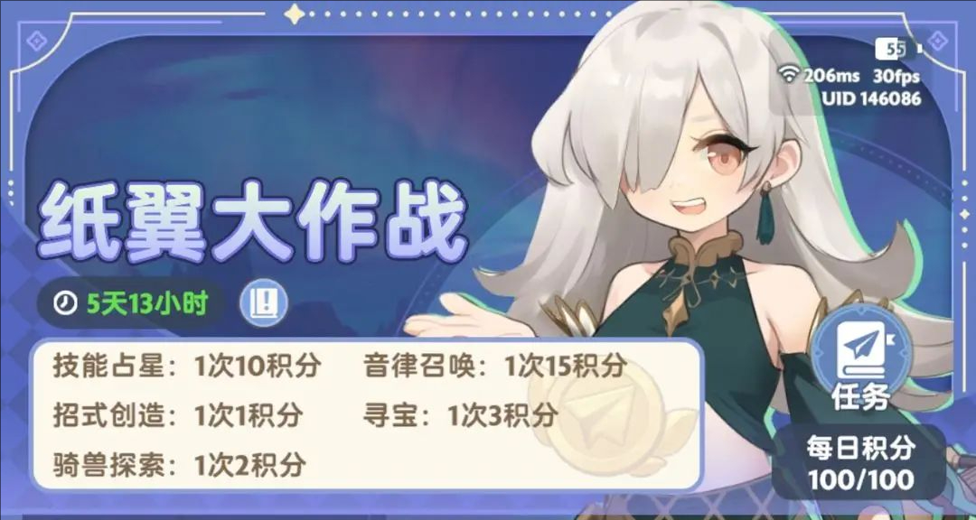 纸飞机一般是隔两期出现一次大奖。白嫖玩家听说修养回来是三期,具体没详细计算过,加上一期资源回血的时间,平民玩家隔两期做满一期纸飞机活动应该不是问题。
