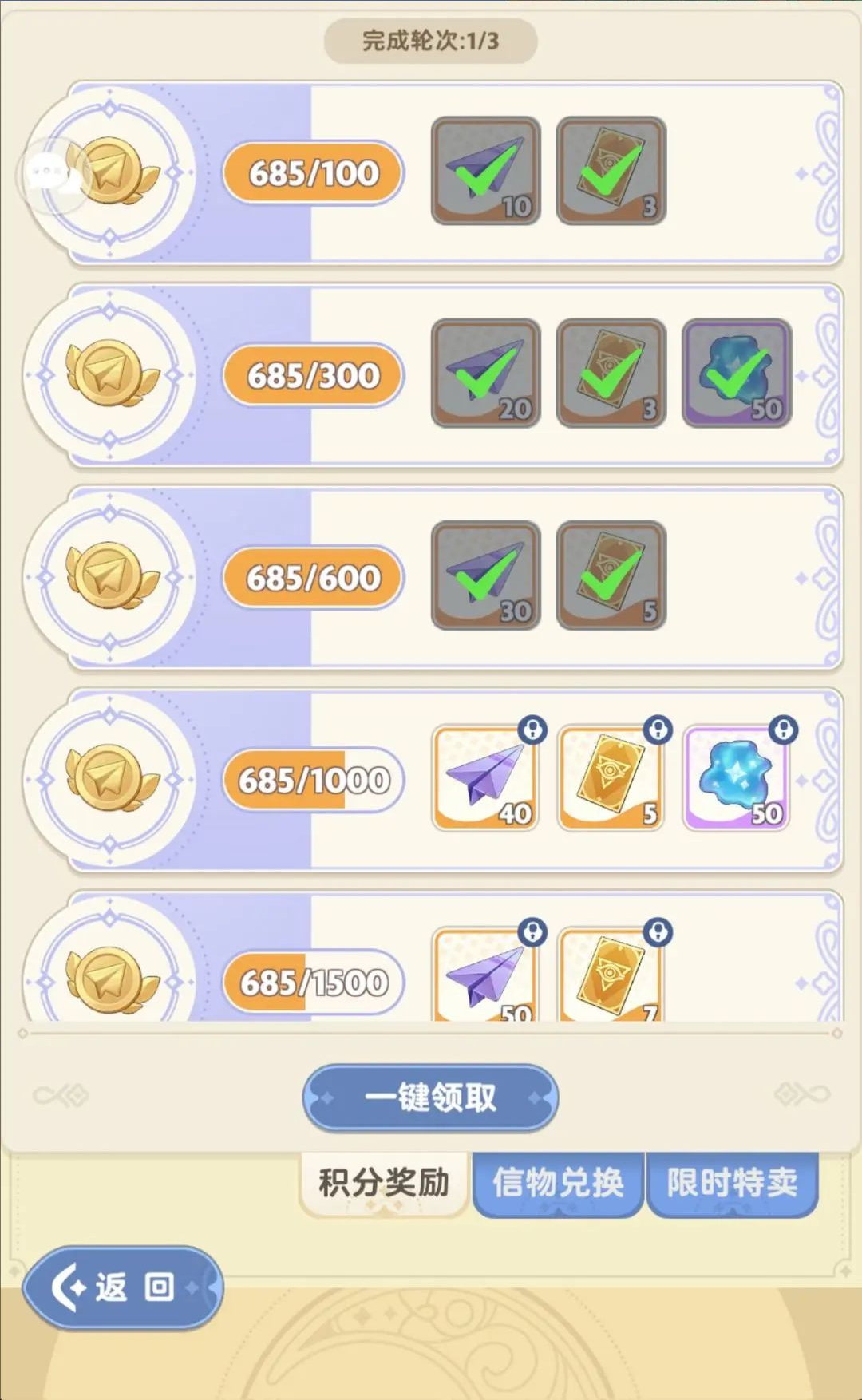 比如本期纸飞机活动有 3 个轮次,满 9000 积分(约等于 90000 星钻)。